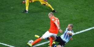 No cambiaron demasiado las cosas en el suplementario. El ingreso de Maxi Rodríguez por Lavezzi pretendía cumplir dos premisas: oxigenar porque el Pocho estaba muy cansado y tirar a Palacio más adelante para que Agüero tuviese más compañía. No hubo caso, aunque Holanda no inquietó, Argentina, que tuvo sus chances, no pudo. Y así llegó la cara y cruz de los penales.