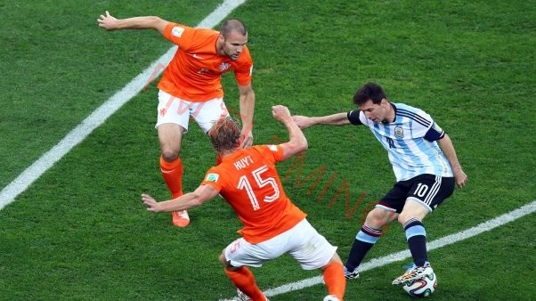 En el segundo tiempo Holanda volvió a tener más la pelota. A Argentina le costaba recuperarla y cuando lo hacía no tenía receptores en la línea de avanzada. Había demasiado espacio entre el medio, Lavezzi e Higuáin. Messi debía retroceder demasiado para tomar contacto con el balón y cuando lo hacía le doblaban y hasta le triplicaban la marca.