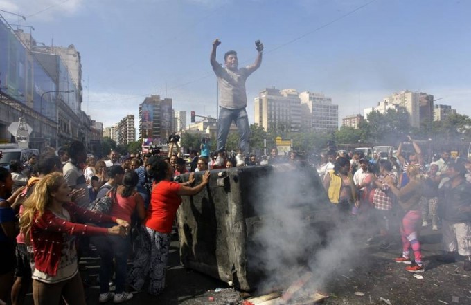 tantes ante el cordón que formó la Guardia de Infantería de la Policía Federal para impedir que avancen. La protesta de los manteros se centró en el reclamo de poder conservar su fuente de trabajo de venta callejera e impedir el desalojo del lugar.