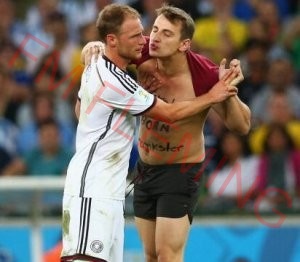 Como suele suceder en eventos de esta envergadura, un hombre se metió en la cancha para llamar la atención de millones de personas.