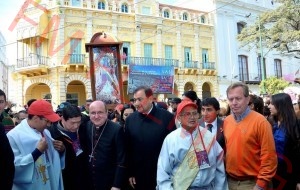 El intendente acompañó la llegada de la Virgen de Urkupiña a la Catedral.