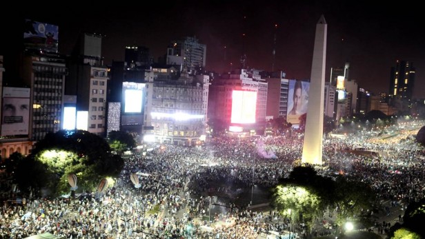 Miles de personas se concentraron en el Obelisco de la Capital Federal, y en los alrededores, pese a la a la derrota sufrida por la Selección argentina ante Alemania, que salió campeón del Mundial Brasil 2014.