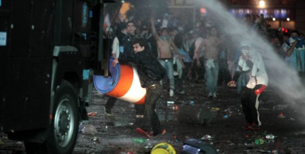 BUENOS AIRES.- Una serie de incidentes se registraban esta noche en el Obelisco durante los festejos por el subcampeonato de Argentina en el Mundial Brasil 2014, cuando un grupo de personas generó destrozos en un móvil de televisión y se enfrentó con la Policía.