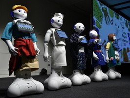 Cinco diseños fueron seleccionados para participar en el desfile de entre 150 propuestas creadas por varios artistas japoneses para "Pepper for Biz", el modelo para empresas comercializado por el gigante de las telecomunicaciones Softbank.