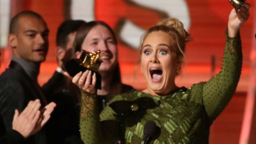 Adele se llevó los premios principales en la quincuagésima novena entrega de los Grammy en Los Angeles.