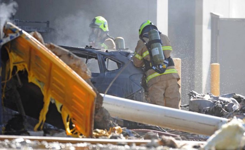 Varias unidades de bomberos acudieron al centro comercial DFO, en el barrio de Essendon Fields, para controlar las llamas provocadas cuando la avioneta se estrelló en la parte trasera de dos establecimientos comerciales.