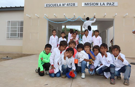 Inauguró el nuevo edificio escolar que reemplaza a la antigua escuela rancho, al que asisten niños chorotes, wichí, chulupí y criollos. Son formados por 14 maestros, 7 de ellos egresaron del profesorado de Educación Intercultural Bilingüe, terciario que forma docentes en Santa Victoria Este.