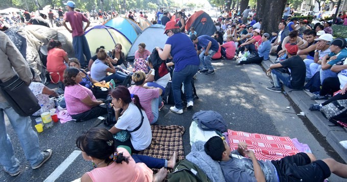 Protesta y acampe en plena 9 de Julio