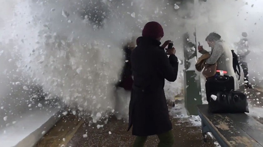 La tormenta Stella ha dejado a su paso por Nueva York y la Costa Este estadounidense impactantes imágenes de nieve, a pesar de azotar esa zona del país de forma menos virulenta que la esperada inicialmente. Pero a pesar de su poca incidencia, sí ha provocado algunos problemas y causado más de una sorpresa, como la de unos pasajeros que esperaban al tren en la estación de Rhinecliff (Nueva York), y que acabaron este miércoles sepultados por un alud de nieve, tal y como recoge el vídeo publicado por Nick Colvin.