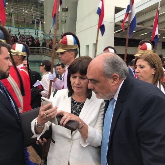 La Ministra Patricia Bullrich y el Gobernador Ricardo Colombi siguieron de cerca las últimas novedades del Operativo Sapucay este mediodía en Paraguay. Colombi es parte de la comitiva del presidente de la nación Mauricio Macri en Asunción del Paraguay.