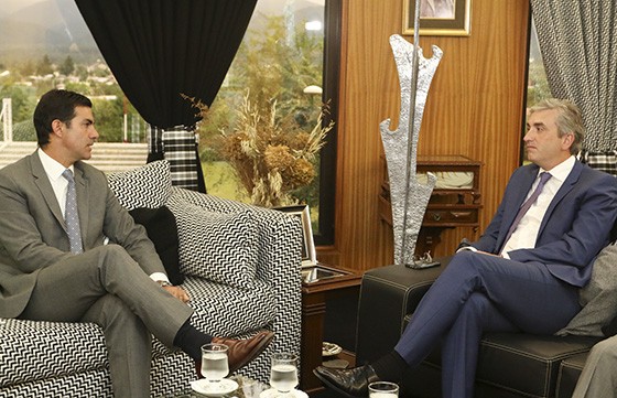El gobernador Juan Manuel Urtubey recibió esta tarde en Casa de Gobierno, al CEO de Fortuna Silver Mines, Jorge Ganoza Durant. En la reunión también participó el vicepresidente de la empresa Manuel Ruiz Cornejo, el gerente de Relaciones, Federico Huidobro y el secretario de Minería de Salta, Ricardo Salas.