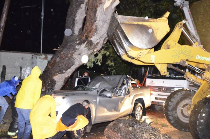 Según reportó el comisario general de la zona Este, Eduardo Impellizzeri, la víctima era un hombre que circulaba en una camioneta VW Amarok y que perdió la vida luego de que un árbol cayera sobre el vehículo.