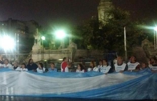 La Policía impidió esta noche que gremialistas docentes de CTERA armaran una "escuela itinerante" en la Plaza del Congreso.