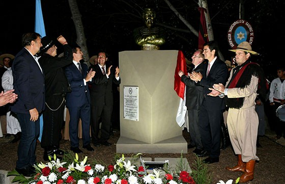 La nominación de una calle se hizo por primera vez mediante una ley. El gobernador Urtubey recibió una copia del instrumento y descubrió un busto donado por el Gobierno de Salta en memoria del héroe salteño que tiene dimensión americana.