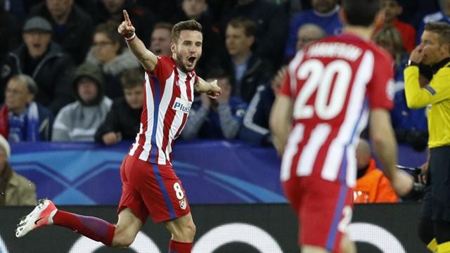 Saúl abrió el marcador a los 26 minutos del primer tiempo y marcó el gol número 100 del club madridense en la historia de ese torneo. A los 16 de la segunda etapa igualó Jamie Vardy, definiendo junto a un palo en un arco tapado por tres jugadores del conjunto colchonero. Luego, los locales insistieron con poco orden y escasa puntería, y los españoles apostaron a algunos contraataques esporádicos, pero sin generar peligro.