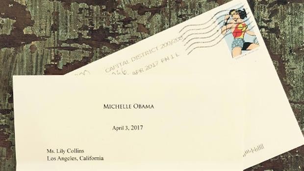 La actriz Lily Collins se sorprendió cuando recibió una carta personal de Michelle Obama y no es de extrañar.