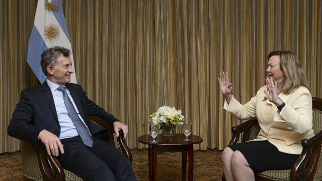 El presidente Mauricio Macri se reunió con la titular de XTO-Exxon Mobil, Sara Ortwein, en el hotel Houstonian. XTO es una compañía especializada en la perforación y producción de activos no convencionales de petróleo y gas.