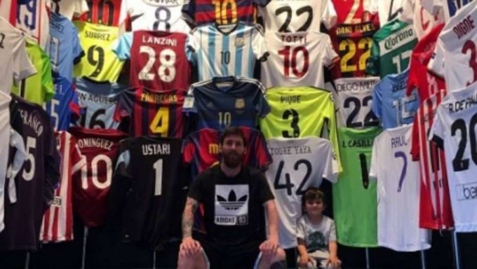 Lionel Messi sorprendió en Instagram con su impresionante colección de camisetas. En la imagen, el capitán de la Selección está acompañado por su hijo Thiago, y a su alrededor están las casacas que intercambió a lo largo de su exitosa carrera. En el centro de la escena, están las propias. Son cuatro: dos del Barcelona y dos de la Selección. Son la columna vertebral de un collage que impacta.