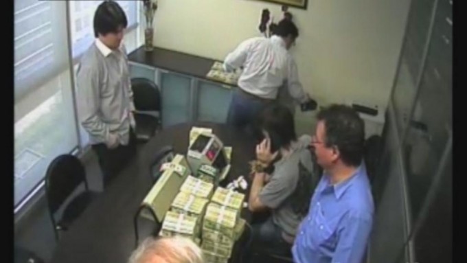El contador Pérez Gadín, Martín Báez y otros allegados a Lázaro, contando dólares en la cueva financiera SGI, "La Rosadita".