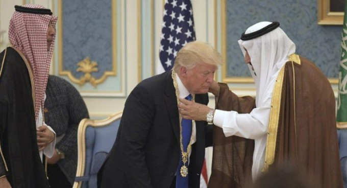 Trump repitió el mismo gesto a cinco años de cuestionar a Obama por su reverencia ante el rey de Arabia Saudita
