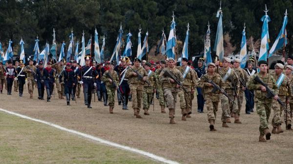 Efectivos de las Fuerzas Armadas y 20 aviones participarán este sábado de un desfile militar, junto a Veteranos de Malvinas y músicos recorrerán a pie y a caballo más de dos kilómetros por la avenida Del Libertador.