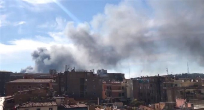Una densa columna de humo oscuro se observaba desde distintos puntos de la capital italiana y una nube negra, incluso, cubría zonas de Ciudad del Vaticano.