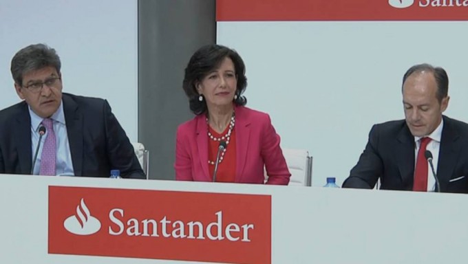 Foto PortadaAna Botín, en el centro, con el consejero delegado y el responsable en España del Banco Santander, durante la rueda de prensa.