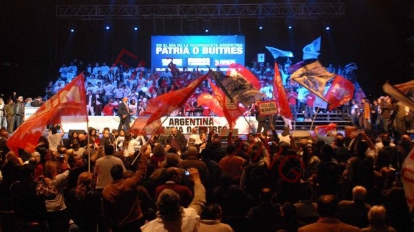 Bajo la consigna Patria o buitres comenzó el acto en el Luna Park