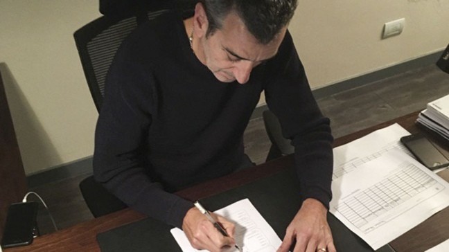 Una fotografía tomada en las oficinas del Palacio Raggio capturó el momento justo en el que Randazzo firmaba el acta, que será presentada ante la junta electoral del Frente Justicialista.