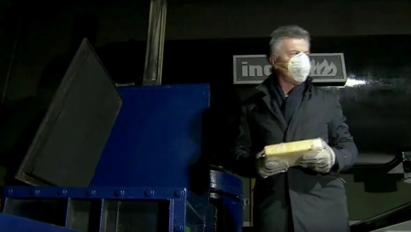 Mauricio Macri encabezó un acto en el Edificio Centinela en donde incineraron la cocaína incautada en el operativo Bobinas Blancas.