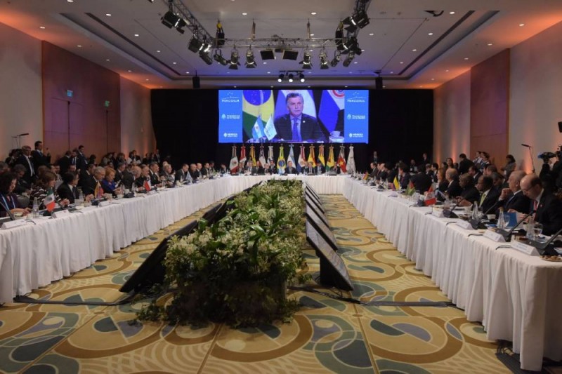 En el inicio del encuentro, Macri le cedió la palabra al canciller Jorge Faurie, quien resumió la gestión de la Argentina en la presidencia pro témpore del Mercosur, que hoy será traspasada a Brasil, a manos del presidente Michel Temer, presente en el encuentro.