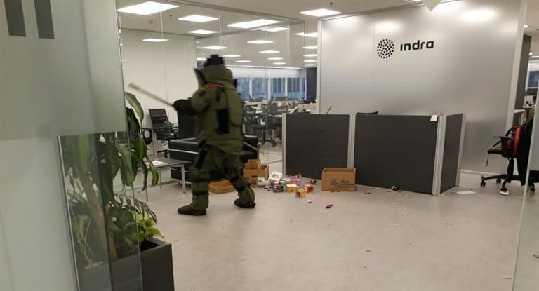 En tanto, la empresa Indra afirmó en otro comunicado que "en el día de la fecha en horas de la tarde, se recibió en nuestras oficinas un paquete que al ser abierto explotó".