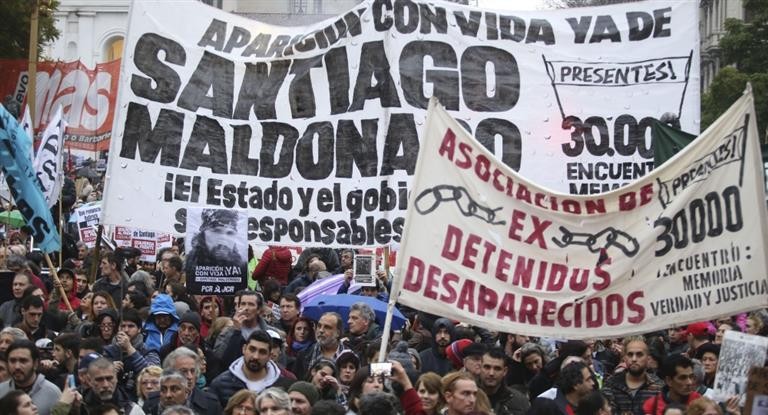 "Exigimos a la ministra Bullrich que aparte a la Gendarmería Nacional de toda instancia de investigación y la retire de la Ruta Nacional N 40 donde sigue apostada en señal de amedrentamiento", reclamaron los organismos en el documento. En tanto, su hermano, Sergio Maldonado, dio un emotivo mensaje final: "Estoy orgullosos de vos Santiago, queremos a Santiago con vida", exclamó.