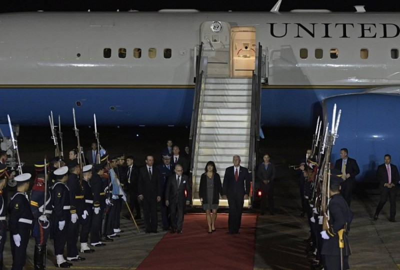 Pence arribó en el marco de la gira que lo llevará a visitar Panamá, Colombia, Argentina y Chile en el marco de la crisis política que atraviesa Venezuela, que fue suspendido del Mercosur por denuncias de violaciones a los derechos humanos, por lo que en el Gobierno nacional no descartan que ese sea un tema de las conversaciones con Macri.