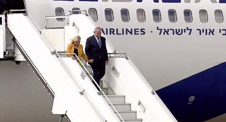 Bajo estrictas medidas de seguridad, Netanyahu arribó cerca del mediodía al aeropuerto internacional de Ezeiza, acompañado por su esposa Sara y una delegación de 30 empresarios.