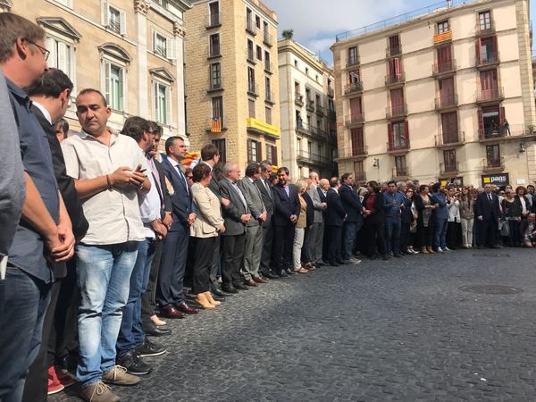 12:00En estos momentos se realiza la concentración en la plaza Sant Jaume de Barcelona como rechazo a la actuación policial durante el 1-O. Carles Puigdemont y el resto de consellers del Govern, así como representantes del ayuntamiento de Barcelona, presentes.