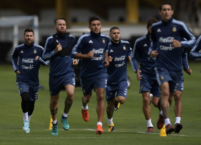 Tras la llegada de Leo, el DT Sampaoli dispuso que en la práctica matutina estuvieran en cancha el mendocino más Salvio, sin Dybala.