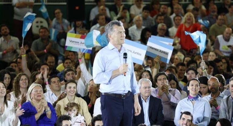 En el marco de un acto con presencia de dirigentes del oficialismo, entre los que se contó al jefe de Gobierno de la Ciudad, Horacio Rodríguez Larreta, y la gobernadora de la provincia de Buenos Aires, María Eugenia Vidal, convivieron todos los elementos de la liturgia oficial: escenario en 360°, globos y papeles de colores, y la arenga al grito del "Sí se puede".