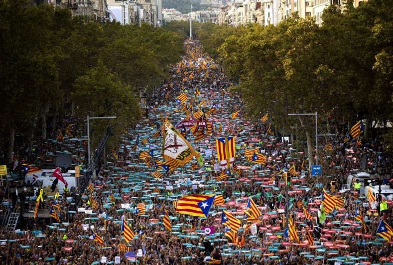 Cientos de miles de personas manifestaron ayer en Barcelona para pedir la libertad de los dos líderes secesionistas encarcelados el pasado lunes, poco después de que el jefe del Ejecutivo español, Mariano Rajoy, anunciara que destituirá al gobierno catalán encabezado por Carles Puigdemont y convocará a elecciones en Cataluña.