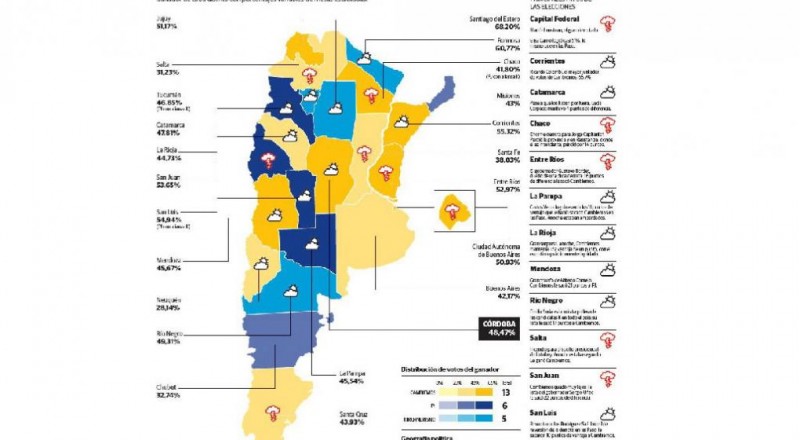 Con esos distritos, más Jujuy, Neuquén, La Rioja y Santa Cruz, Cambiemos puede mostrar un triunfo que, geográficamente, puede verse del siguiente modo: