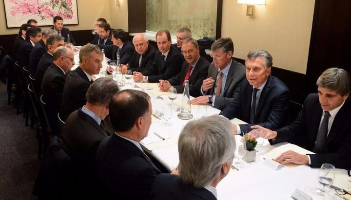 El presidente también fue atentamente escuchado por los gobernadores de Córdoba, Juan Schiaretti, de Entre Ríos, Gustavo Bordet, y de Santa Fe, Miguel Lifschitz, además del presidente provisional del Senado, Federico Pinedo, el canciller Jorge Faurie, el ministro de Finanzas, Luis Caputo, el secretario de Asuntos Estratégicos, Fulvio Pompeo, el senador Rodolfo Urtubey, el presidente de la Agencia Argentina de Inversiones y Comercio Internacional, Juan Trípodi, el jefe de Gabinete del Ministerio de Finanzas, Pablo Quirno, y el vocero presidencial, Iván Pavlovsky, que formaron parte de la comitiva que llegó ayer a Estados Unidos.