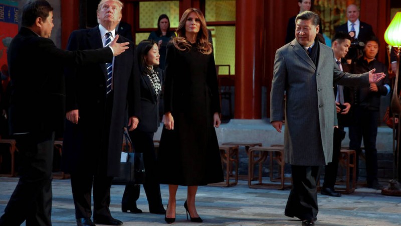 La jornada de hoy, más distendida, se limita a una serie de actividades privadas con Xi y su esposa, la soprano Peng Liyuan. Trump y su esposa fueron recibidos por el presidente y la primera dama en la Ciudad Prohibida, el antiguo palacio imperial y centro de poder en las dinastías Ming y Qing hasta 1911. Vestidos con abrigos grises, Xi y Peng mostraron a los Trump, ambos de riguroso negro, las distintas estancias imperiales, tras lo cual se prevé que los cuatro asistan en el mismo palacio a un espectáculo de ópera y tengan un banquete privado. Trump será el primer líder extranjero que cena en la Ciudad Prohibida desde 1949.