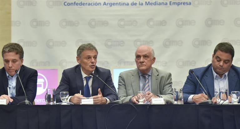 Los ministros de Trabajo, Jorge Triaca; de Hacienda, Nicolás Dujovne; y de Producción, Francisco Cabrera; expusieron ante el comité de la Confederación Argentina de la Mediana Empresa (CAME).