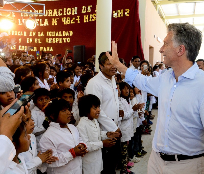 El presidente Mauricio Macri encabezó el acto de inauguración de la Escuela N° 4824, ubicada en la Misión Km 2, en el paraje Pluma de Pato, Salta.