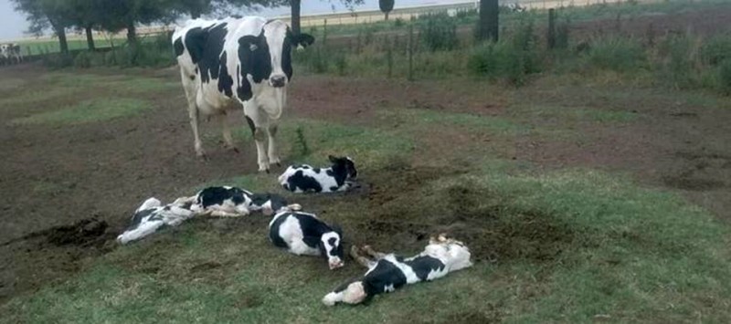 Un insólito caso ocurrió en la zona rural de Pascanas, en Córdoba, donde una vaca holando parió 5 terneros a la vez.