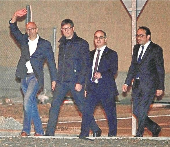Los exconsejeros que como Junqueras y Forn también estaban en la cárcel de Estremera (Raül Romeva, Carles Mundó, Josep Rull y Jordi Turull) salieron del centro penitenciario en el que ingresaron el 2 de noviembre pasadas las seis y media de la tarde tras abonar las fianzas de 100.000. Ya en la calle, se abrazaron a la treintena de políticos y militantes que esperaban pese al intenso frío. Romeva, Mundó, Rull y Turull tenían la pretensión de volver a Barcelona en coche, según fuentes de ERC, y no hicieron declaraciones. No obstante, se espera que participen en la campaña catalana. Antes que ellos ya habían salido de Alcalá Meco las exconsejeras Dolors Bassa y Meritxell Borràs.