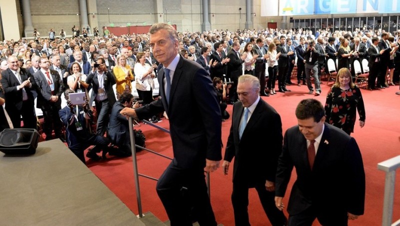 "Sabemos que los beneficios aún no han alcanzado a todos y esto ha producido cuestionamientos a la globalización económica. Es responsabilidad de todos afrontar los desafíos del Siglo XXI. La Argentina quiere contribuir a afianzar el crecimiento, creemos que sólo se puede lograr trabajando juntos. Vivimos una época de transformaciones", agregó el Presidente en el centro de Exposiciones y Convenciones de la Ciudad, acompañado sobre sillones blancos en el escenario por los presidentes Michel Temer (Brasil), Tabaré Vázquez (Uruguay), Horacio Cartés (Paraguay), Roberto Azevedo -director de la OMC- y la ex canciller Susana Malcorra, en carácter de presidente de la XI Conferencia Ministerial.