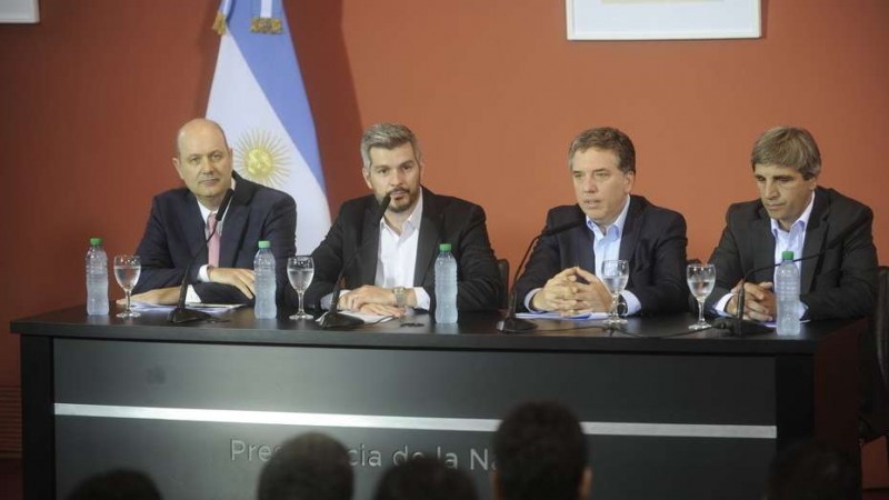 El anuncio corrió por cuenta del ministro de Economía, Nicolás Dujovne, en compañia del jefe de Gabinete, Marcos Peña, el ministro de Hacienda, Nicolás Dujovne, el ministro de Finanzas, Luis Caputo y el titular del BCRA, Federico Sturzenegger.