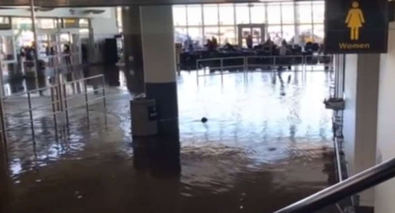 En imágenes grabadas por medios locales se observan las instalaciones aeroportuarias con el suelo lleno de agua, que parece escapar de manera profusa de una tubería situada en el techo.