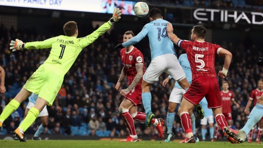 El Kun marcó sobre la hora el gol del triunfo ante Bristol City, de la segunda división, por 2 a 1, en condición de local, en la ida de las semifinales.